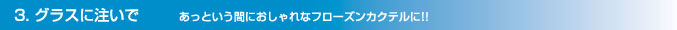 庫内からできるだけ振動を与えないように取り出して、そのままお出しすれば約−6℃の氷より冷たいドリンクとして。