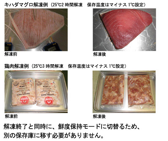 解凍機能が付いた冷蔵庫。今まで解凍庫・冷蔵庫2台必要でしたが、フレスキュア・ソーイングは二つの機能を1台にしました。